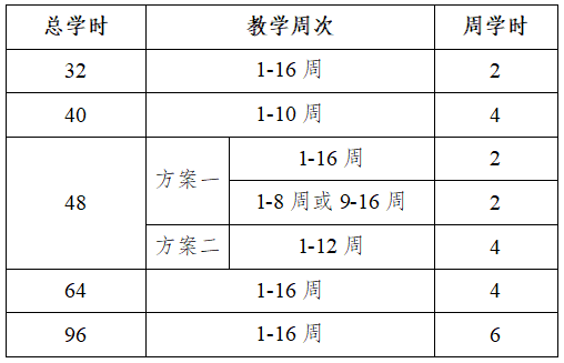 教学任务周次及学时分配建议如下表安排;若有前半学期和后半学期课程,班级课表要均匀分布。