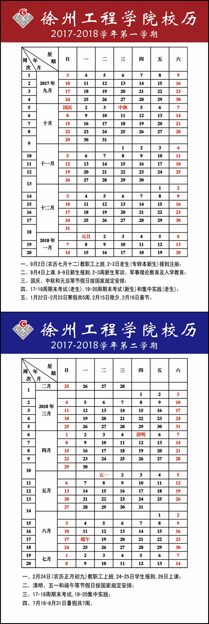2017-2018 校历