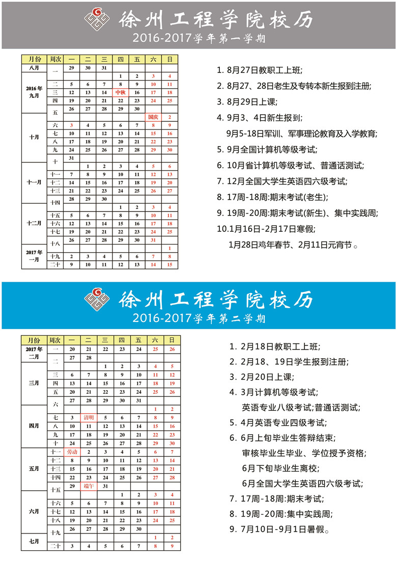 2016-2017 校历